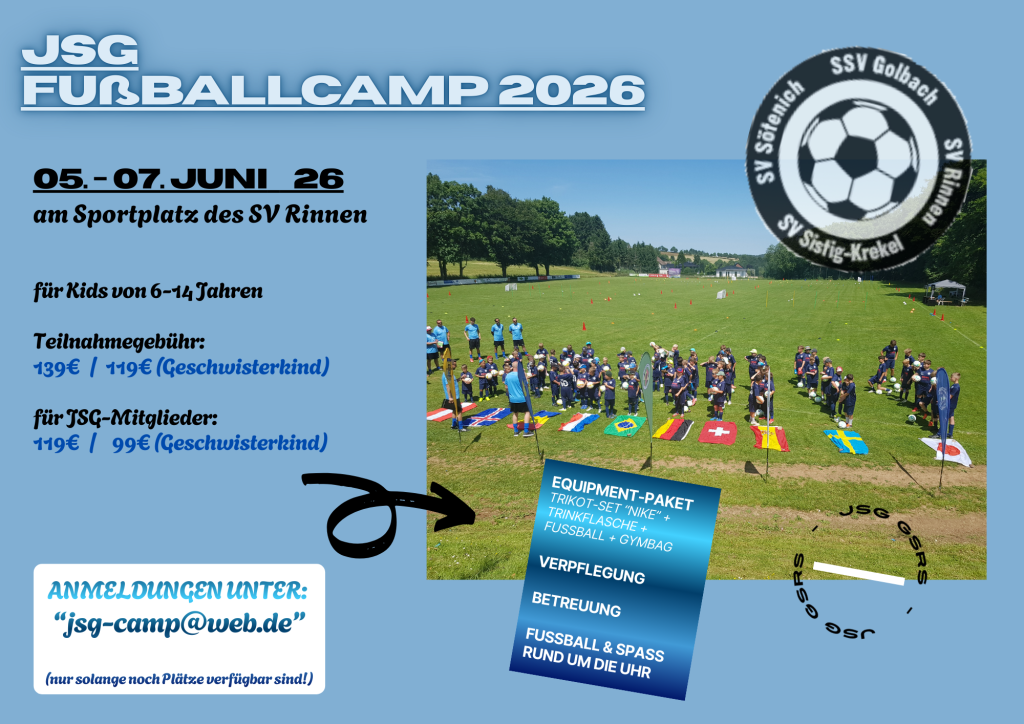 Es ist wieder soweit – nach dem tollen Camp-Comeback im letzten Jahr nach einer längeren Pause steht wieder das Fußballcamp unserer JSG in den Startlöchern!